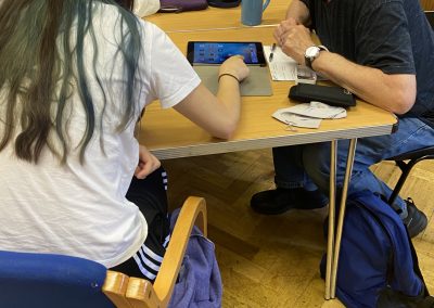Andrew is a regular visitor to the group and is working to expand his tech knowledge with the help of a regular volunteer, Ian.